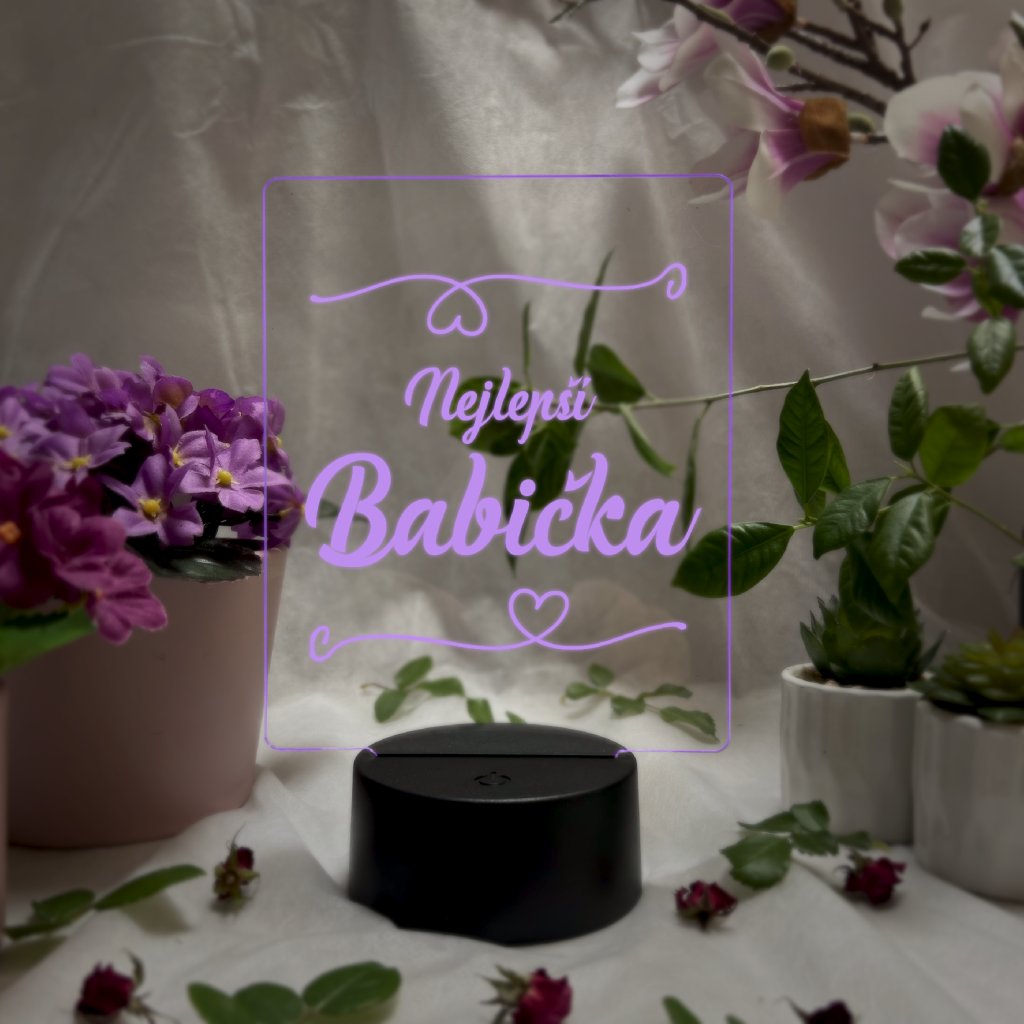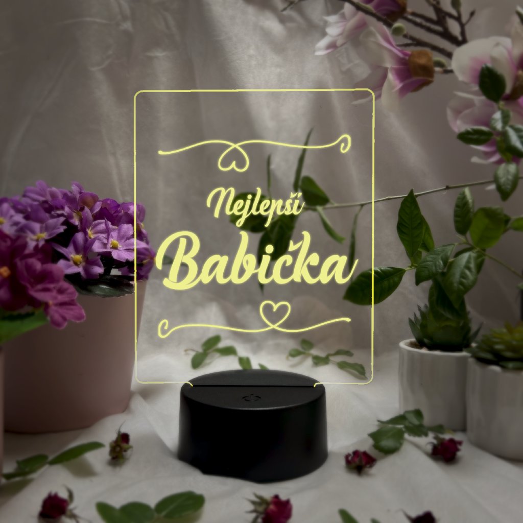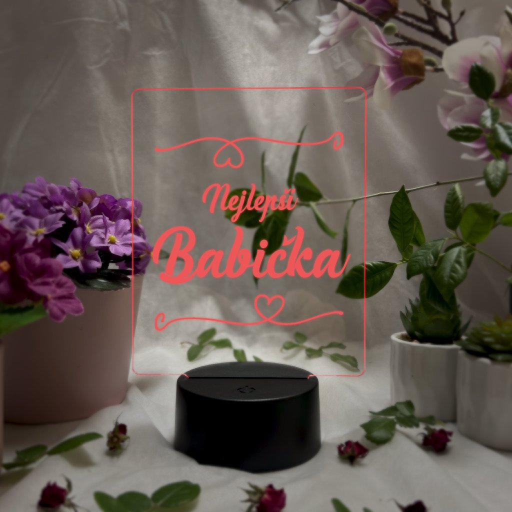 Lampička s nápisem "Nejlepší Babička" přinese do vašeho domova jedinečnou atmosféru. Obrázek je detailně zpracovaný a přenesený na akrylové sklo pomocí nejmodernějších technologií, které zajišťují vysokou kvalitu a trvanlivost.